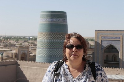 In Khiva, it was the first time we had seen bus loads of tourists since Turkey! You can by a two day ticket for all the sites within the citadel, pay in soumme as it works out cheaper than paying in dollars, as the official rate is less than the black-market rate. We found the official rate was just under 1900 to the dollar and the unofficial was 2800(except Samarkand where we got 2700). So you see it pays to pay in Soumme. There were two sites within Khiva which were not included on the ticket, the Kuha Ark; you have to pay extra to go up onto the bastion where you get magnificent views of Khiva. The Pahlavon Mahmud Mausoleum and all minarets have additional charges (albeit small ones). Another particular site within the citadel we really enjoyed was the Juma mosque which was cool and peaceful and beautiful when we went there.